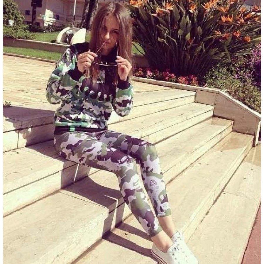 Camouflage colors look bold and aggressive. Designer Phillip Lim was the first to use this print to decorate a women's sweatshirt.