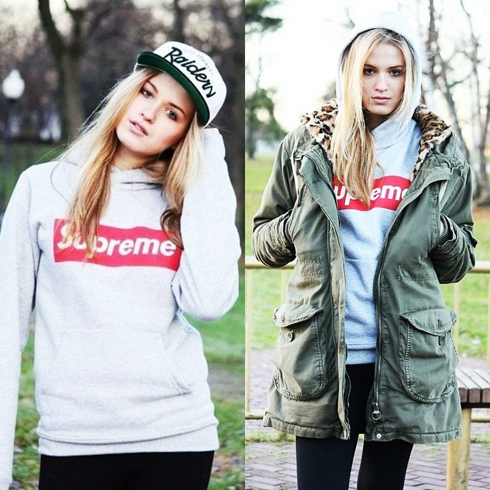 Men can easily combine Supreme sweatshirts with jeans, chinos, sweatpants or shorts.