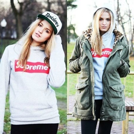 Supreme sweatshirts are aimed at a specific audience of consumers: young people who are passionate about hip-hop and street subcultures. Therefore, the products are deliberately simple, no frills style. Sports free cut, elongated models.