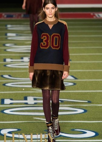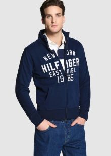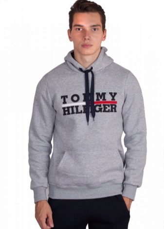 For Tommy Hilfiger sweatshirts is characterized by the absence of variegation, floral and lurid patterns. Preference is given to a stylish strip, geometric patterns, prints that beat the name of the brand, the same white-blue-red combination of colors of the logo. Men's sweatshirts are often supplied with details in the so-called "university style" (traditionally in America, sports sweaters were marked with signs of belonging to a team of an educational institution).