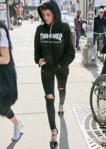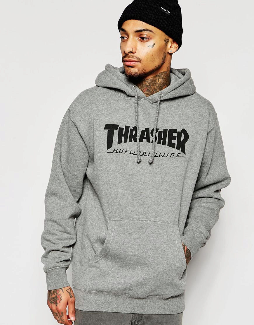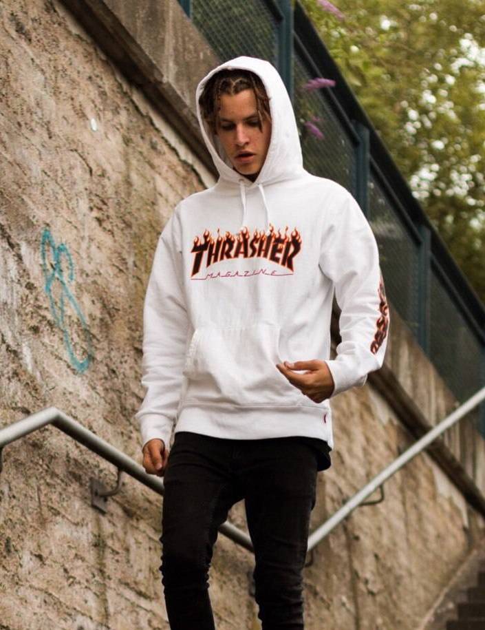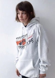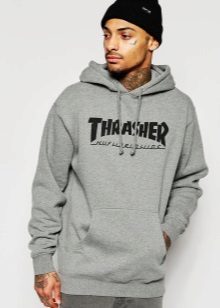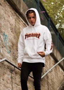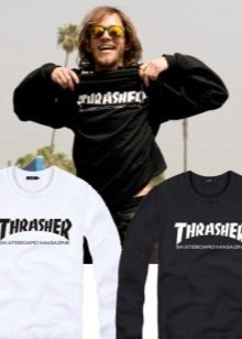 Thresher clothes can be worn with almost anything. A classic option for many is a sweatshirt with narrow cropped jeans and Vans or Converse sneakers.