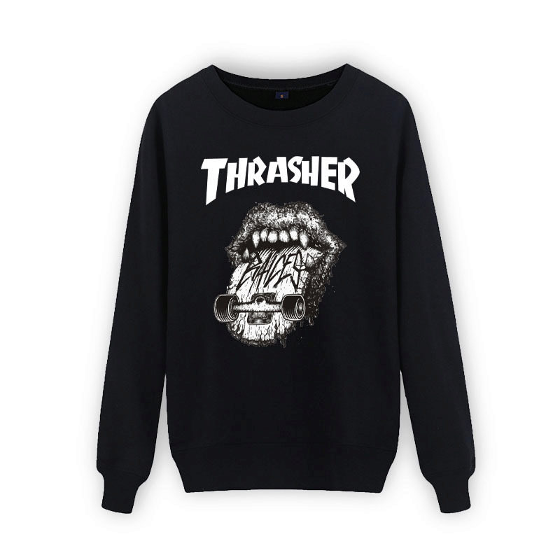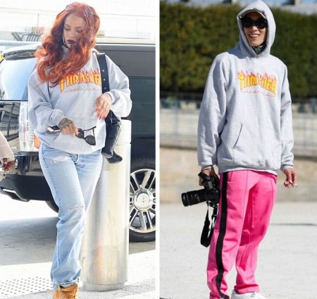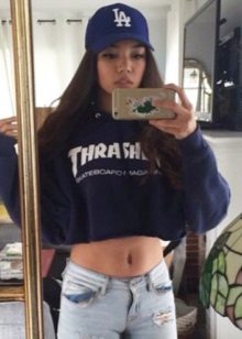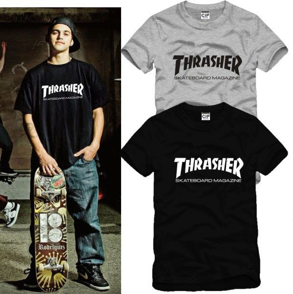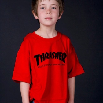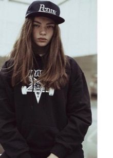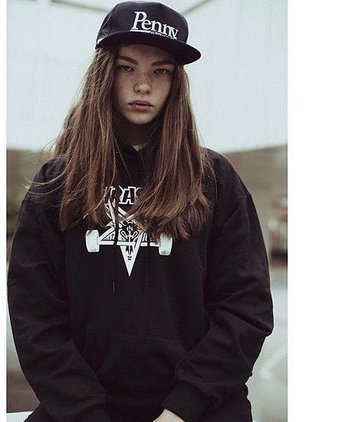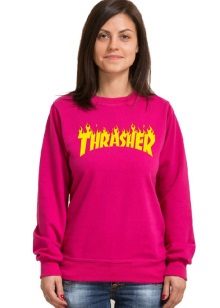 It can also be combined with clothing for skaters of any other brand. Girls can wear a Thrasher T-shirt with any simple skirt or shorts; denim is best. In the world of street fashion, there are no restrictions.