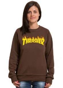 A characteristic feature of all Thrasher models is the ultramodernity. Among them there are both sweatshirts and sweatshirts with the inscription and logo of the brand, which became its business card, as well as T-shirts and jackets with various prints. Almost all clothes are presented in a wide dimensional grid and in different colors. For example, the Skate Mag model exists in several versions: white with black lettering, white with orange, black with white, and a number of other new colors.