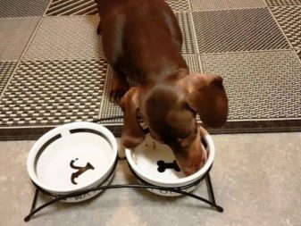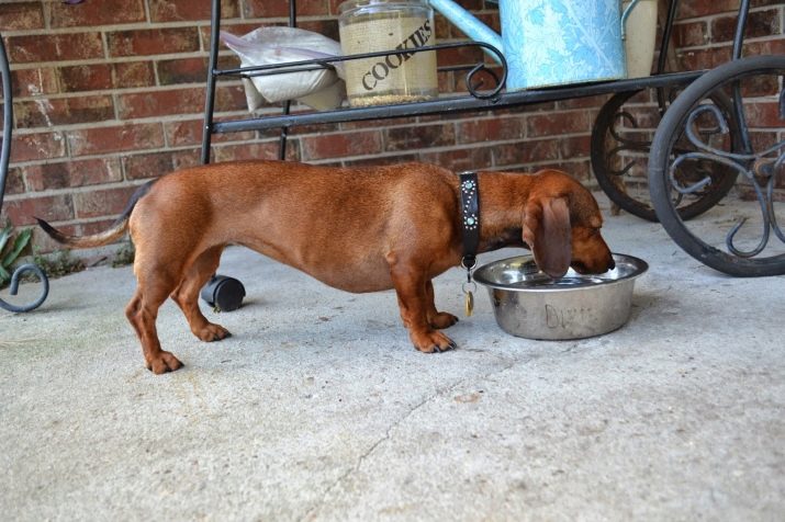 With age, the dog begins to eat less, but the portion for one meal increases significantly. Adult dachshunds are fed twice a day, while it is necessary to ensure that the dog has constant access to a bowl of clean water.