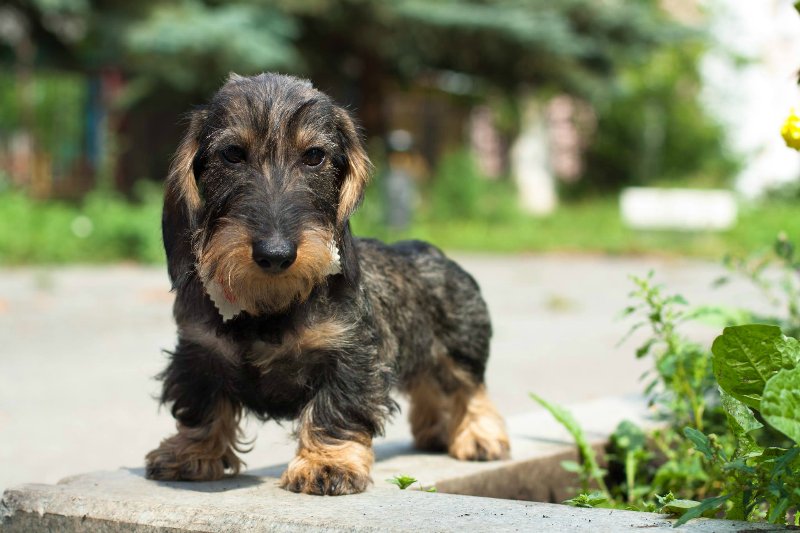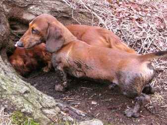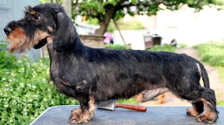 - Wire Dachshunds look very interesting and unusual. The hair of an animal can be up to 2 centimeters long, while it will be hard, and in some places even barbed. It is a little more difficult to care for such wool, it needs to be regularly combed and washed as needed.But such a coat is an advantage - it protects the animal's body from damage and bites of small animals.