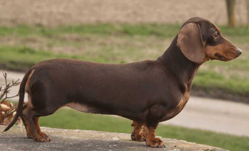 Externally, the dog looks somewhat unusual: has a long oblong body shape, short legs and a thick tail at the base, but a thin tail at the end. In addition, the dachshunds are famous for their strong skeleton and physique, and thanks to such a powerful skeleton, the dog stands firmly on its feet and moves briskly, despite the small size of its paws.