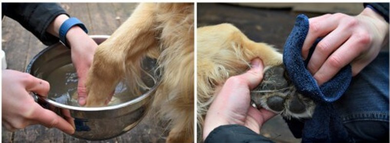 - Despite the fact that you can not completely wash the dog too often, it is necessary to clean the paws after each walk. This can be done with the help of washing or special napkins.