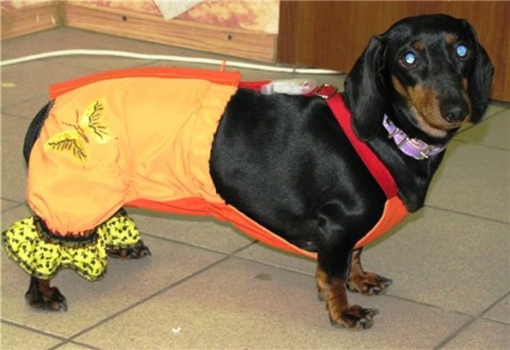 The current is accompanied by secretions that may have a specific smell, so at home you can put on special diapers to keep the dog clean. If you are not going to breed your dog, you should take care of its safety during this period and get special pants for walks, which will not prevent the animal to defecate, but will not allow the stud to produce mating.