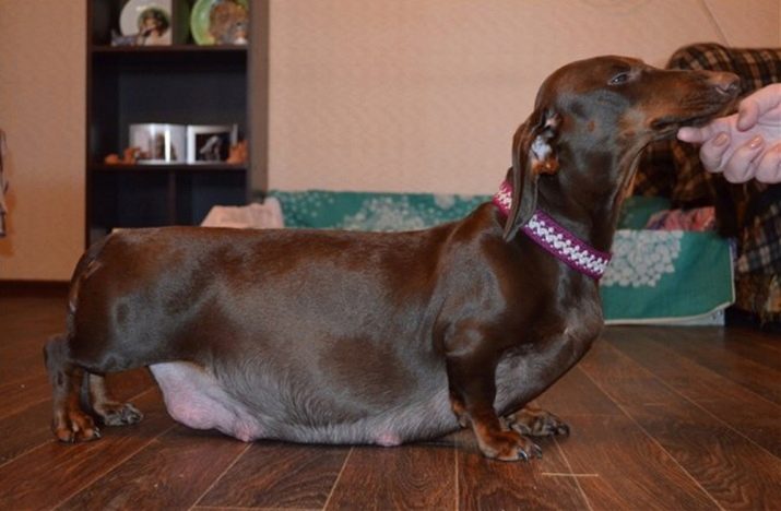 During pregnancy, it is important to provide the dog with everything necessary. Dachshund can be traced increased appetite and some anxiety due to changes in hormonal levels.In addition to increasing the portions, it is also worth adding special vitamins and trace elements to the food that support the physical condition of the puppy dog and help the formation of healthy future puppies.