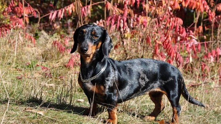 The dachshund has a rather high and strong neck, a slight bulge on the back of the neck and tight skin at the throat. Standard representatives of the breed are large and rather belong to the category of breeds of medium size, rather than small ones. The average weight of an adult dachshund is 9 kilograms, while miniature animals weigh from 2 to 5.5 kilograms per minute.