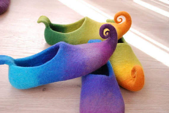 Were in everyday life always, but now are at the peak of popularity. There can be almost all of the above models. Their peculiarity is in the manufacturing method (manually) and in the materials and equipment used. Usually they are natural or blended materials, such slippers are made by felting or knit from yarn. Accordingly, such slippers can be: