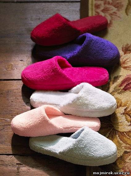 This is a classic model slippers - home shoes without backs. They are closed or with a hole for the fingers. Depending on the material, they can be either a summer option or a winter one. This is one of the most comfortable models of home shoes, which is easy to take off and put on.