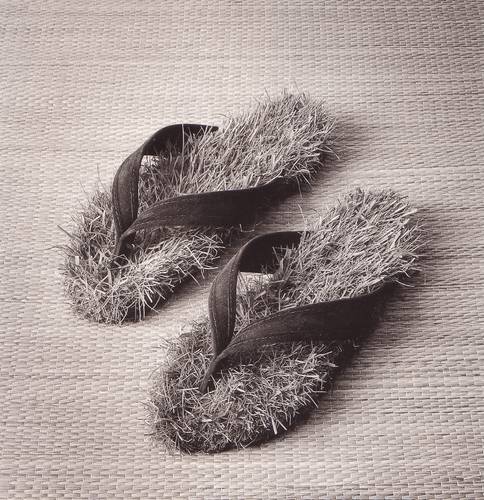 Shoes on a flat sole with a Y-shaped strap, with a jumper between the big and second toes, traditionally used by residents of most Asian countries.