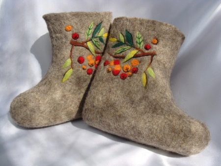 On the streets, especially urban, felt boots can now be seen quite rarely, but as home shoes they are becoming more and more popular. And this is not surprising, because nothing warms as well as things made of natural wool. In addition, decorated with embroidery, pattern and other elements, felt boots look beautiful, original and original. It is easy enough to look after them - these house boots from wool are subject to washing.