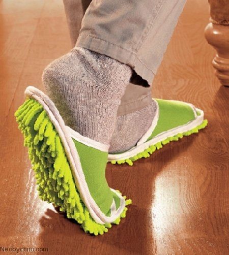 The sole of such slippers is made of microfiber and allows to make dry cleaning of the room in the easiest and imperceptible way - as a result of walking. Then the slippers are washed and dried - and they are ready for use again.