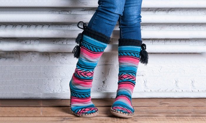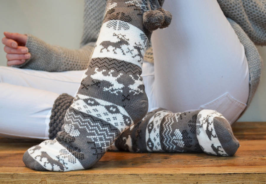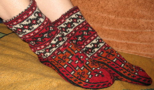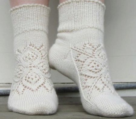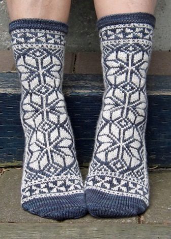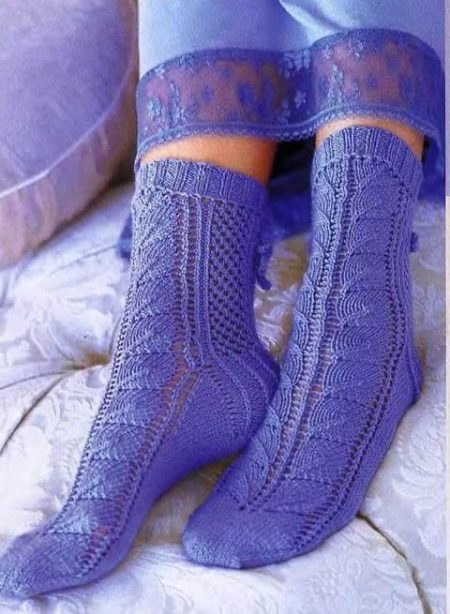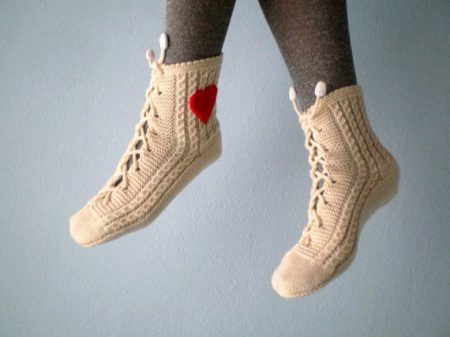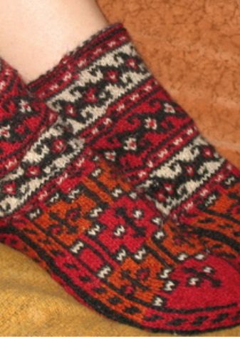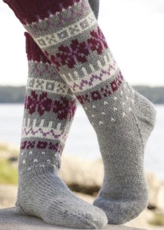 Wool socks can also be laced. However, because of the pattern, the thing becomes less warm, which means it is better to wear it in rooms where there is a carpet.