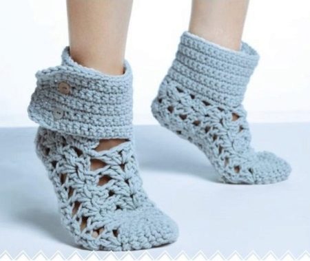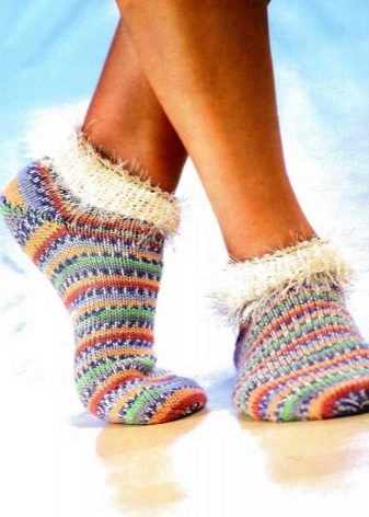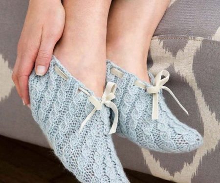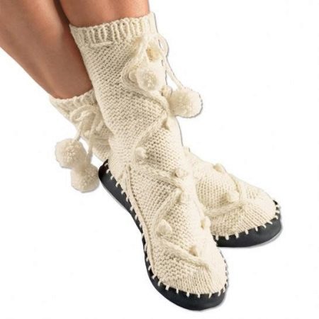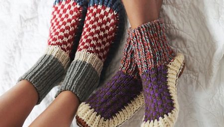 Knitted patterns are thin and voluminous, tall and short. There are options similar to slippers, and there are those that are more like socks.