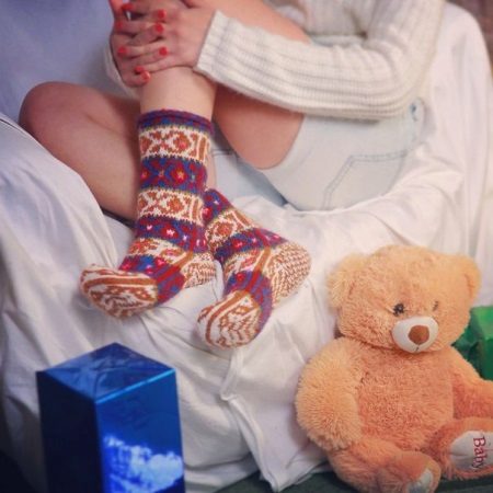 You can choose socks, slippers with bright and unusual design, funny patterns, applications, buttons or bows, and you can choose soft and fluffy slippers in the form of animals.