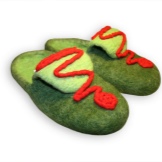 - double-layer slippers made of felt in contrasting colors. In this case, the top layer has curly slots, thus forming an interesting pattern. For example, felt slippers stylized as well-recognized Crocs shoes.