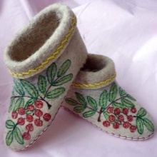 Felt slippers are often richly and interestingly decorated. Works of masters are distinguished by a large variety of decorating elements and styles. Here you can also identify several of the most popular areas: