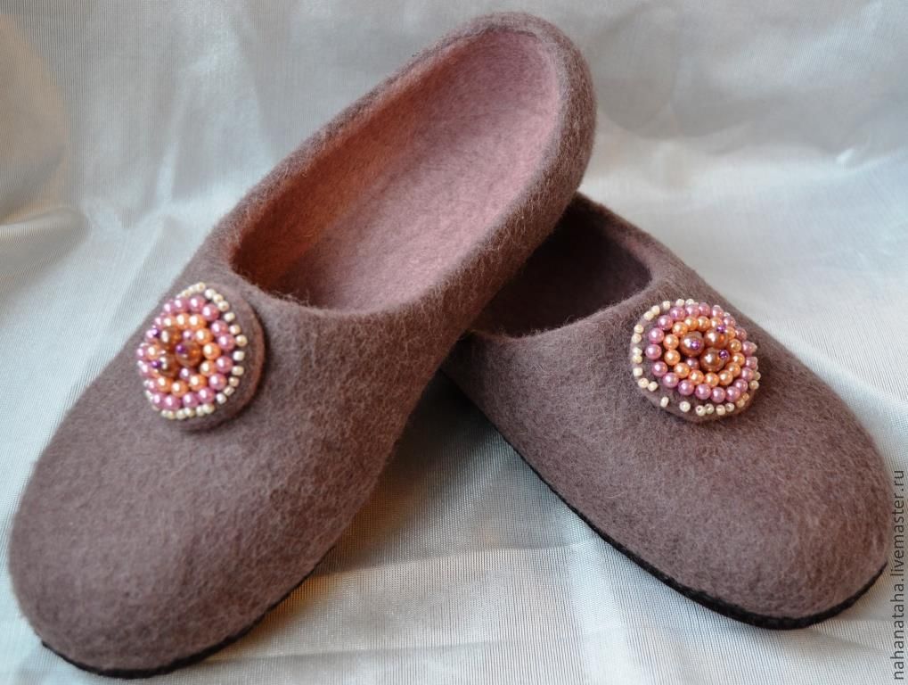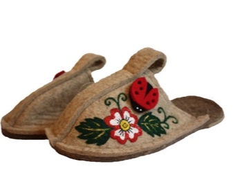 The advantages of felt slippers over other models of home shoes are obvious, so it is not surprising that they are chosen by adults and children, men and women. Felted wool slippers are plentiful. Hand-made solid-colored slippers are very popular. Such shoes are seamless.