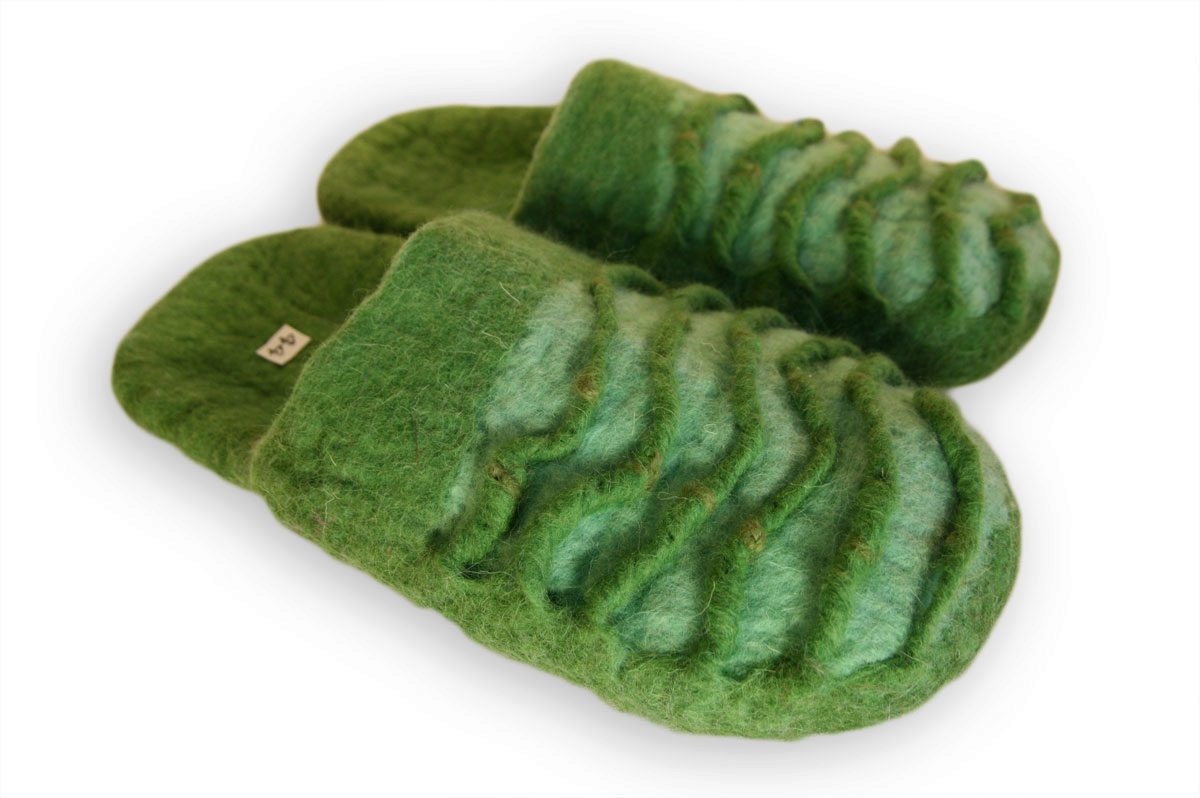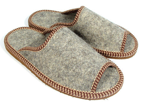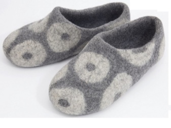 Also found in the sale of felt slippers factory production. The most common model is the shale slippers. They come from both natural wool felt, and from synthetic or blended materials.