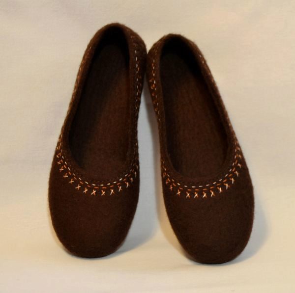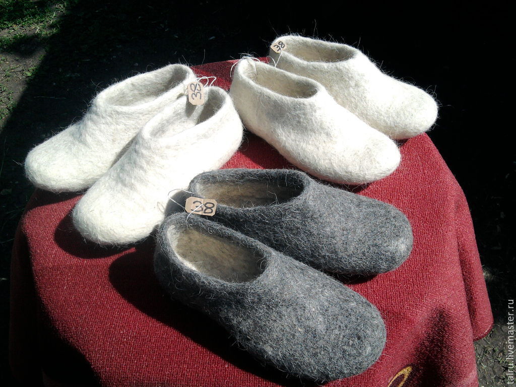 - In the case when you buy the product personally from the master, and not via the Internet, you need to check the elasticity of the felt. Well-knit slippers spring and perfectly retain their original shape.