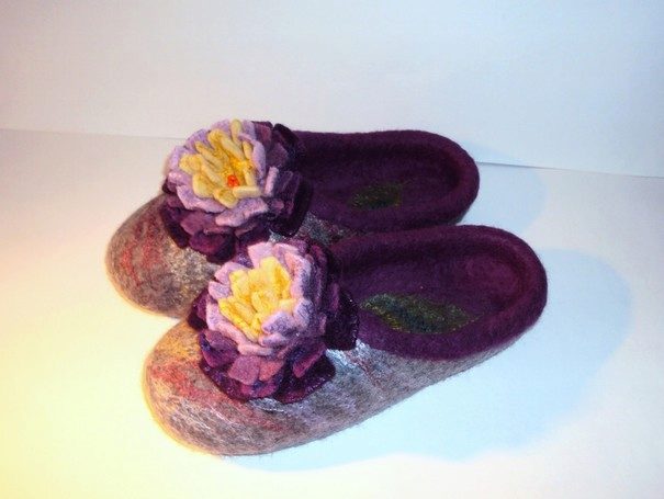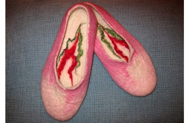 - drawing full of dry felting technique. This pattern is durable, as in the process of felting it becomes an integral part of the slipper.