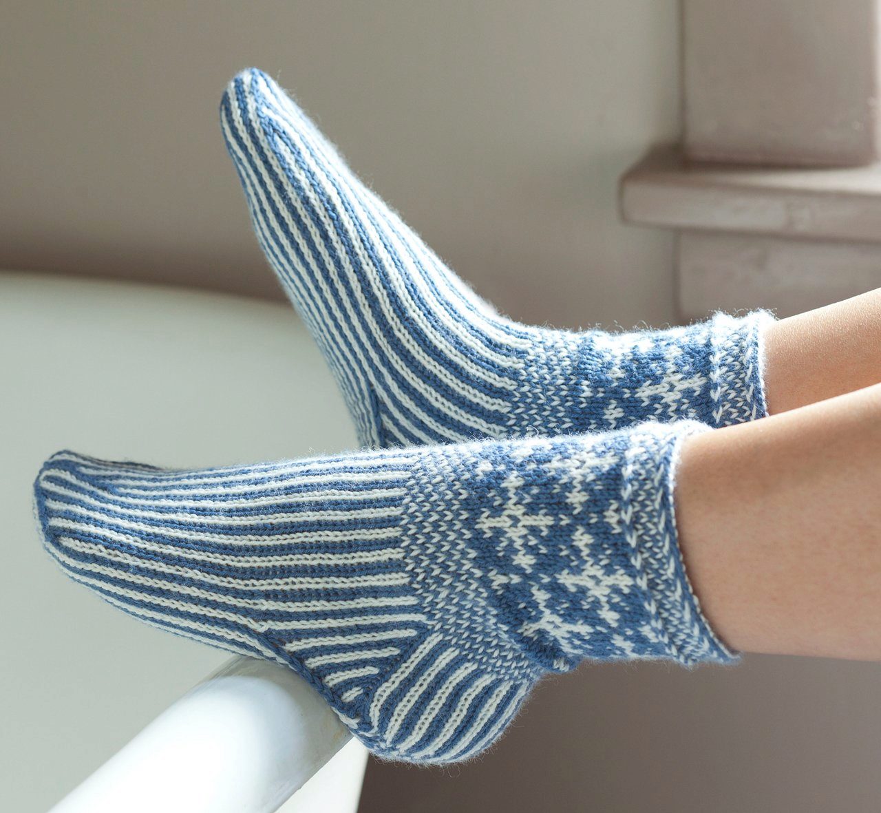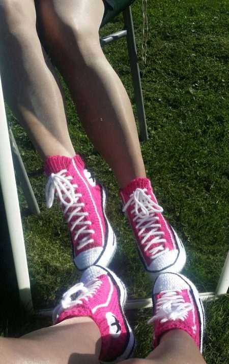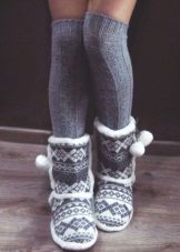 7. Sneakers socks. The most common type of knitted slippers and, moreover, the most familiar. For true conservatives, who are very difficult to get used to everything new, slippers, socks fit perfectly. They can be short, like sports socks, and tall, like socks or even leggings.