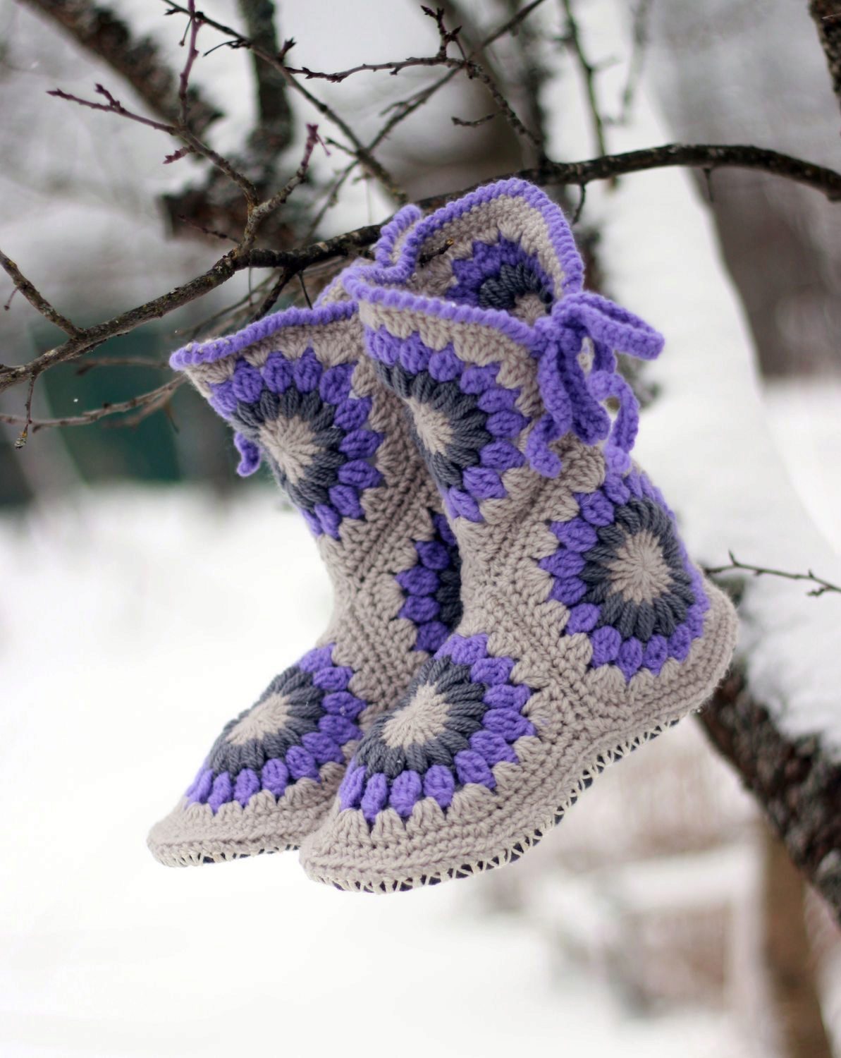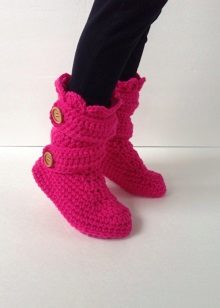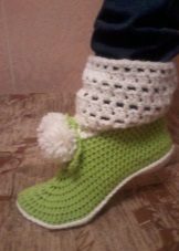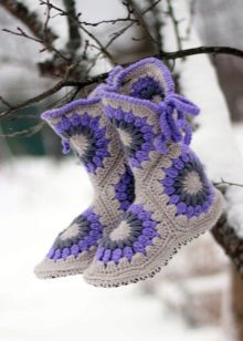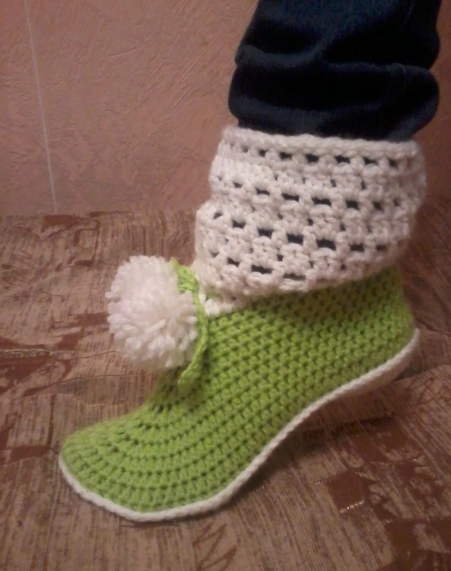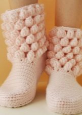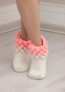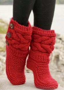 Cozy slippers, boots, made in the original knitting technique, complement the home wardrobe of any fashionista. They will warm their legs in cold winter evenings and just give a good mood.