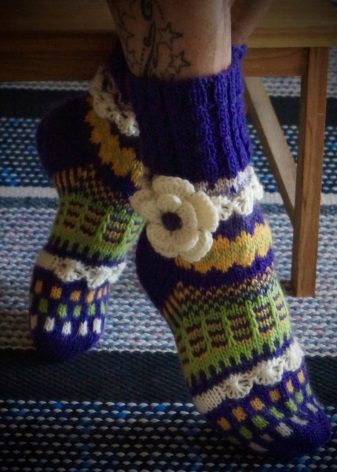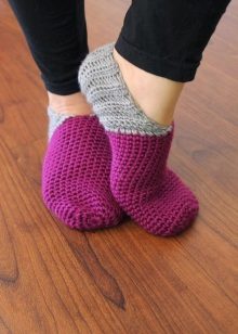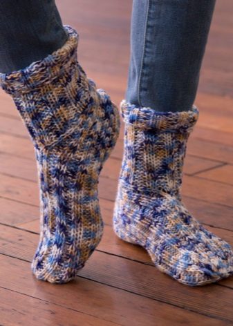 What is this type of home shoes? Everything is very simple: the appearance and shape of knitted slippers vary depending on the personal preferences of the owner, and may look like socks, socks with high and low tops and so on. You can find a huge variety of models that suit you in color, mood, form and even setting.