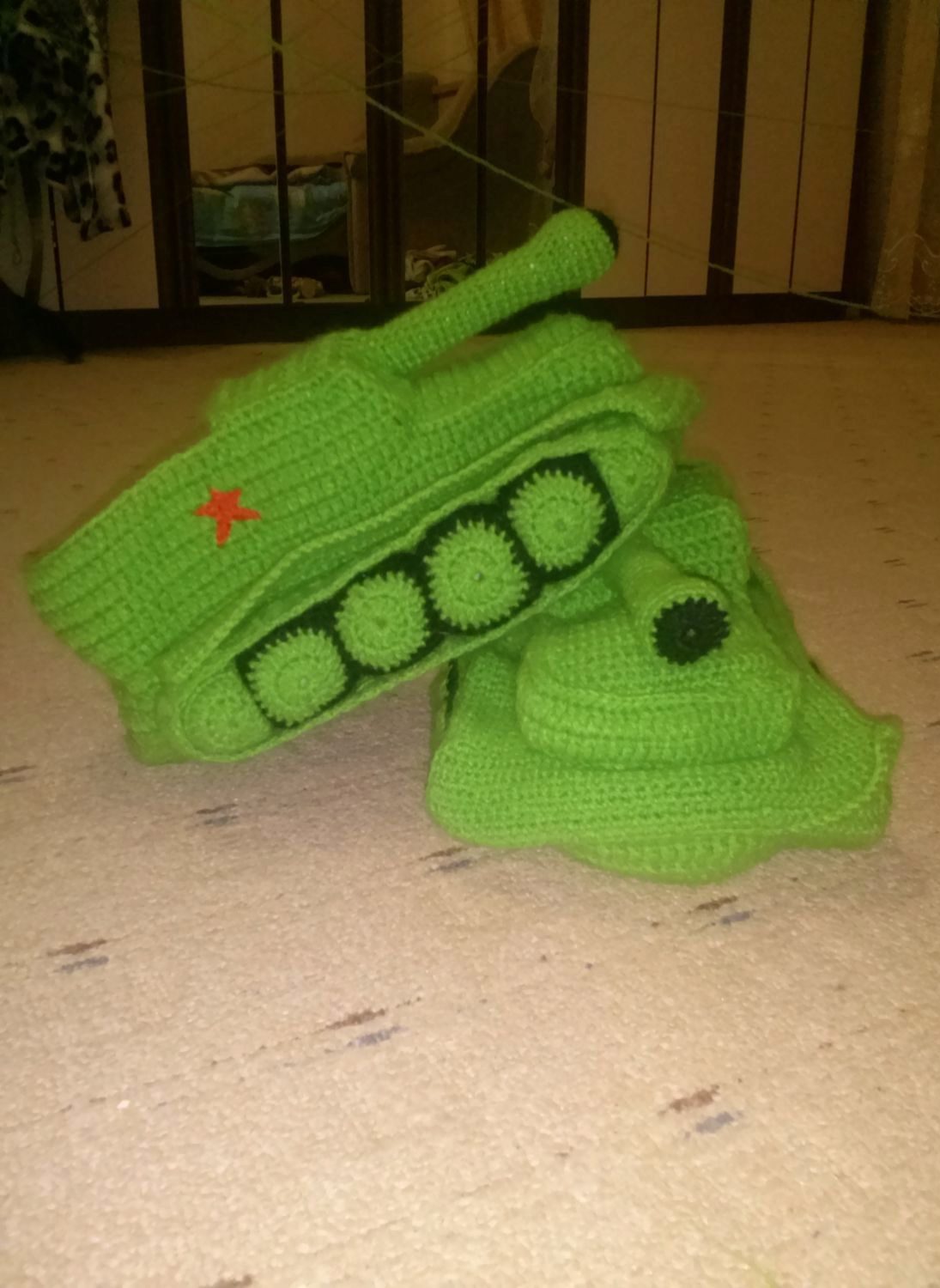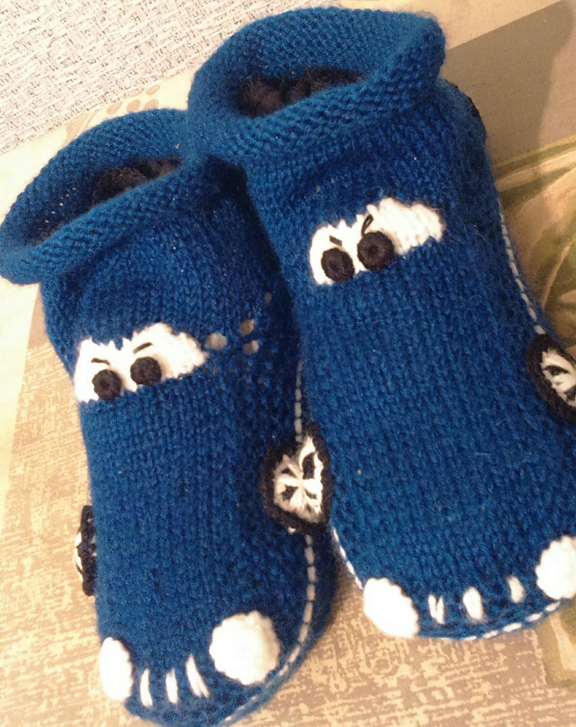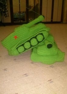 8. Cool. To this section can be attributed some variety of home knitted slippers, created for certain festive events: New Year, Defender of the Fatherland Day (in the form of tanks and cars), and even wedding ones.