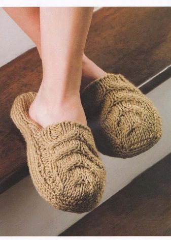 Such home shoes can be either knitted by yourself or ordered from a professional, or also purchased in stores.