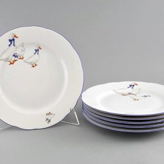 - Porcelain. Today, porcelain plates are considered an element of luxury. It is also worth noting that the identifying mark for the definition of china is weight - it is rather weighty. The cost of porcelain dishes is quite high.