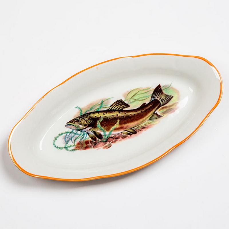 - Fish This plate has an elongated, oval-like shape. Its length is 33–37 cm, width - 23–26 cm.