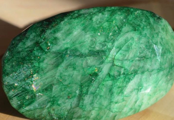 Chrysoprase is a semi-precious stone from the quartz family. The color is saturated green. The cleaner and better the stone is, the more transparent it will be, and the price, respectively, is higher. More turbid chrysoprase are second-rate stones. Under the influence of direct sunlight, the mineral can lose its shine. To restore its appearance, it is enough to wrap the stone with a damp cloth or hold it for several minutes in a tight palm.