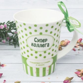 - Mugs. This humble and cute gift will never lose its relevance. You can type the names of the employees or their photos on the circles, or you can pick up dishes with symbolic inscriptions or pictures that are individually suitable for each member of the team.