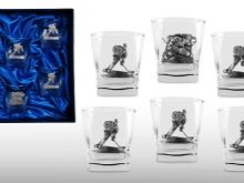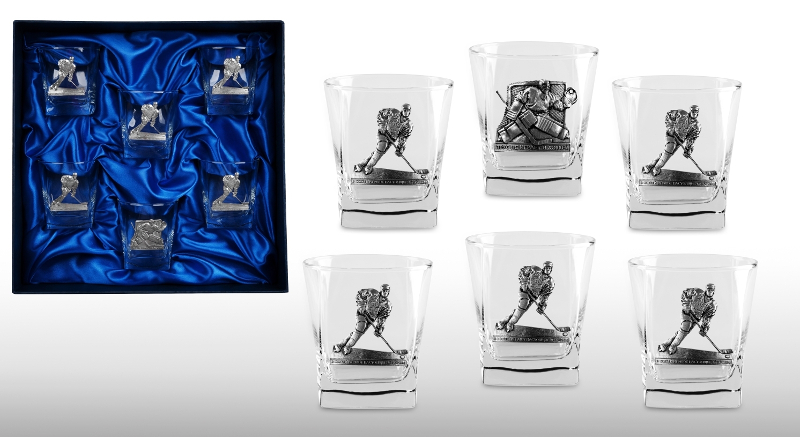- Themed souvenirs. An excellent, and most importantly, an original gift for a hockey player will be a wooden glass with a carved emblem of his favorite hockey club (or a set of glass glasses). Give your sports friend a hockey puck, which will show the city where he won his first match for the first time.