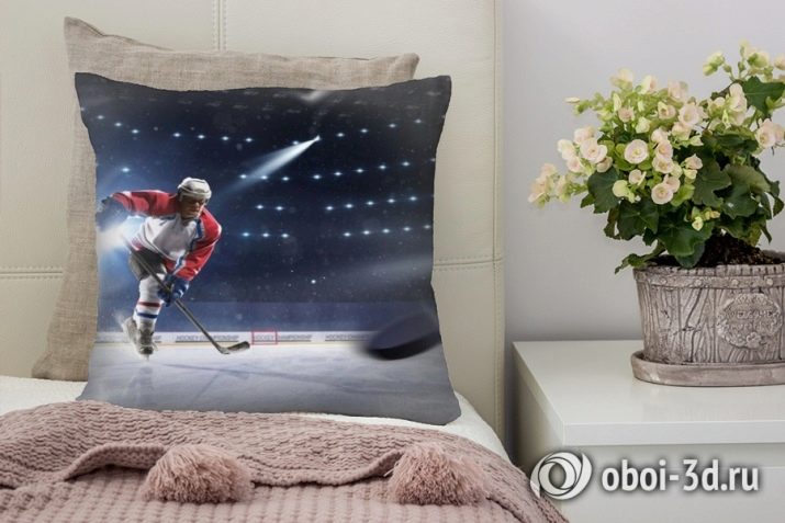 - Little hockey player for his birthday can give original pillow with a picturein which the child is in a hockey form on the ice.