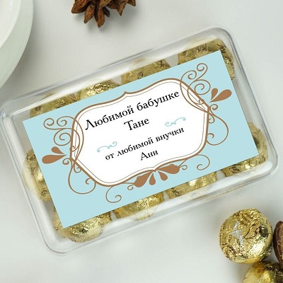 These gifts include chocolate, sweets, gingerbread souvenir, cake with the recipient's name. Exquisitely and beautifully decorated sweet surprise, of course, will please everyone. You can print the words with congratulations on a color printer and make original wrappers for candies.
