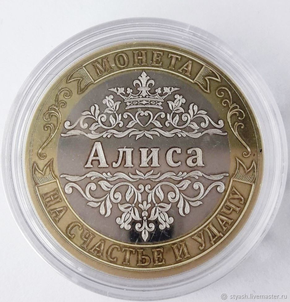 - Nominal coin. This souvenir is perfect for a collector. You can make a coin with your own hands, for example, cut out of paper or plastic, pick up and execute a suitable inscription. And you can ask the master to knock out the name on a real coin. Such a gift will certainly appreciate what they deserve.