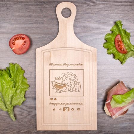 - Kitchen set. Such a kit may include personalized spoon, chopping board, rolling pin, towel, apron. This is a special surprise. Such a gift can be made with your own hands, for example, cut a plank from a tree and sew a towel.