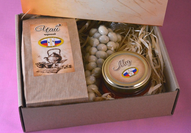Almost universal choice can be sweet gifts; logos or short greetings are often put on them. Not necessarily limited to chocolate - gingerbread will be no worse. A good idea deservedly consider grocery sets. They are placed in the usual cardboard boxes, and in boxes made of wood or plywood.