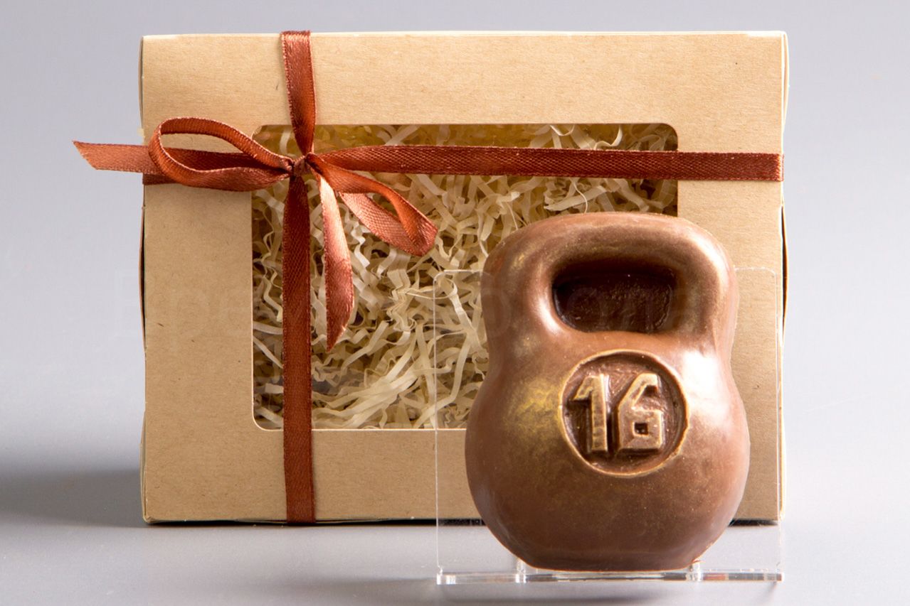 You can not ignore the traditional gifts that will turn out to be more original due to the scale. So, a very large chocolate portion in the form of a dumbbell, a ball, a pyramid will look more attractive.
