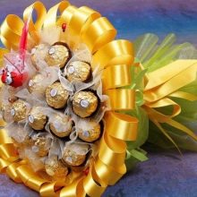 - Sweet gifts. Bouquets or compositions of sweets will surely please the teacher. It will be very original if the design of the product you associate with the music. For example, you can choose a bouquet wrapped in a package of kraft paper in the form of sheet music, or you can buy compositions from candies in the form of a musical mill or musical instruments.