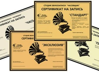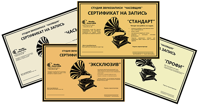 - Certificate in the recording studio.
