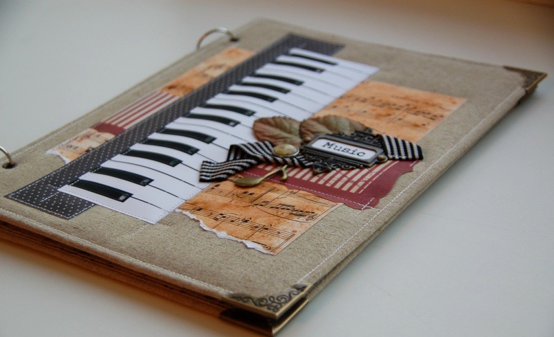 - postcard with a musical theme, made by hand in the technique of scrapbooking or quilling;