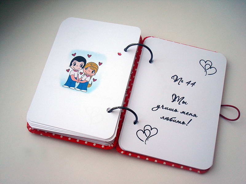 - Cute gift for the first anniversary - a love notepad. You can buy it already ready or arrange it yourself, decorating it properly. In this notebook, you will need to enter various romantic phrases, words, poems, confessions, various situations that symbolize your relationship. A good addition to this presentation will be a few common photos.