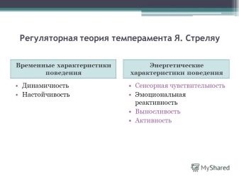 It is recommended to perform these exercises (test) at a more mature age, as some questions may put the pre-school children at a “dead end”. Children still simply did not come across or did not realize what “quick response”, “responsible work”, “change in the decision made” meant. Parents should consider this factor when choosing a test to determine the temperament of the child. As for the test itself, it evaluates 3 main parameters: the level of arousal, the level of inhibition, the dynamism of nervous processes.