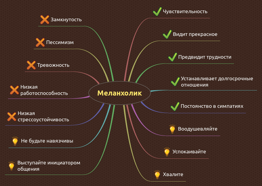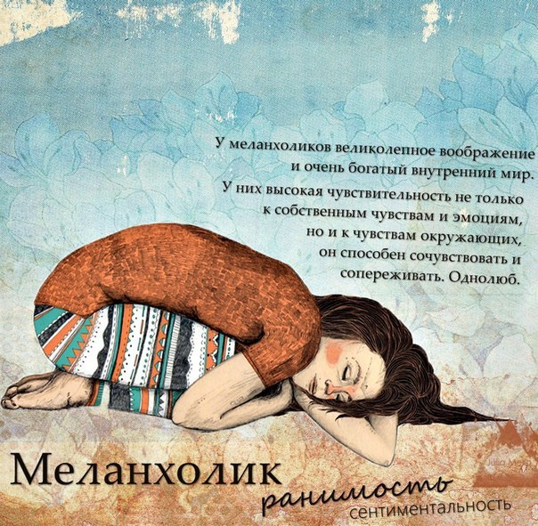 Melancholic is very dedicated. A person with a fine mental organization painfully experiences not only his own problems, but also the troubles of a loved one.